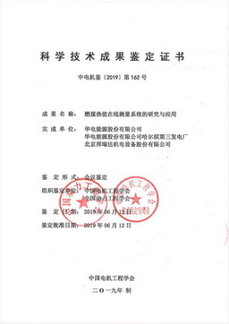 2019年6月12日,中國電機工程學會與中國動力工程學會聯(lián)合召開了該產(chǎn)品的項目鑒定會,鑒定委員會認為:項目研發(fā)的新型燃煤熱值在線測量系統(tǒng),具備成本低、安全性高、運行可靠的特點,解決了火電廠燃煤熱值在線檢測的難題,為火電廠鍋爐燃燒控制和精細化管理提供了技術支撐,具有顯著的經(jīng)濟、社會效益和推廣應用前景,居國際先進水平。