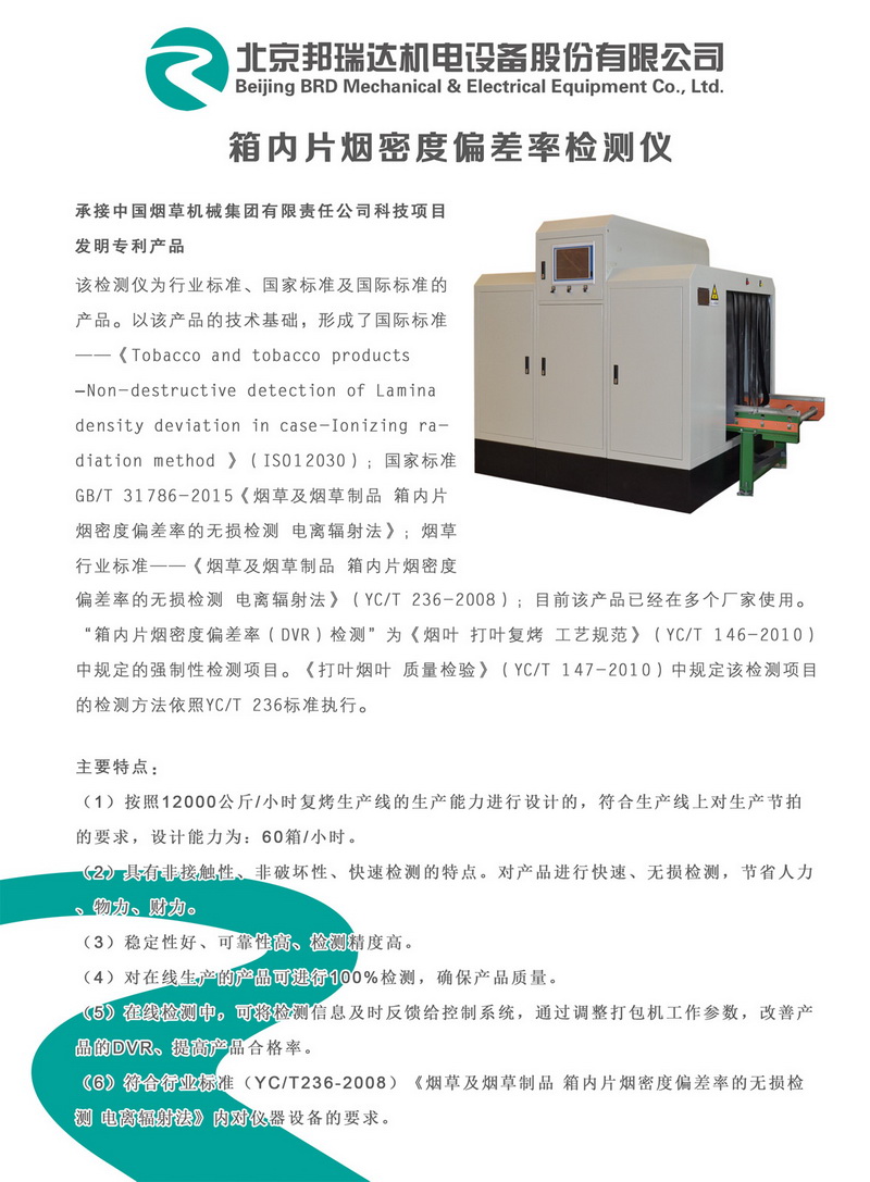 | 箱內(nèi)片煙密度偏差率檢測(cè)儀介紹資料 | |