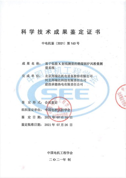 2021年7月20日,中國電機工程學會組織召開了該產(chǎn)品的技術(shù)鑒定會,鑒定委員會認為:項目成果攻克了燃煤鍋爐風粉量在線精準測量的重大難題,為煤粉燃燒鍋爐均衡燃燒控制、低負荷穩(wěn)定燃燒和變負荷靈活運行提供了重要技術(shù)支撐,具有良好的應用前景和社會經(jīng)濟效益。整體技術(shù)居國際領(lǐng)先水平。
